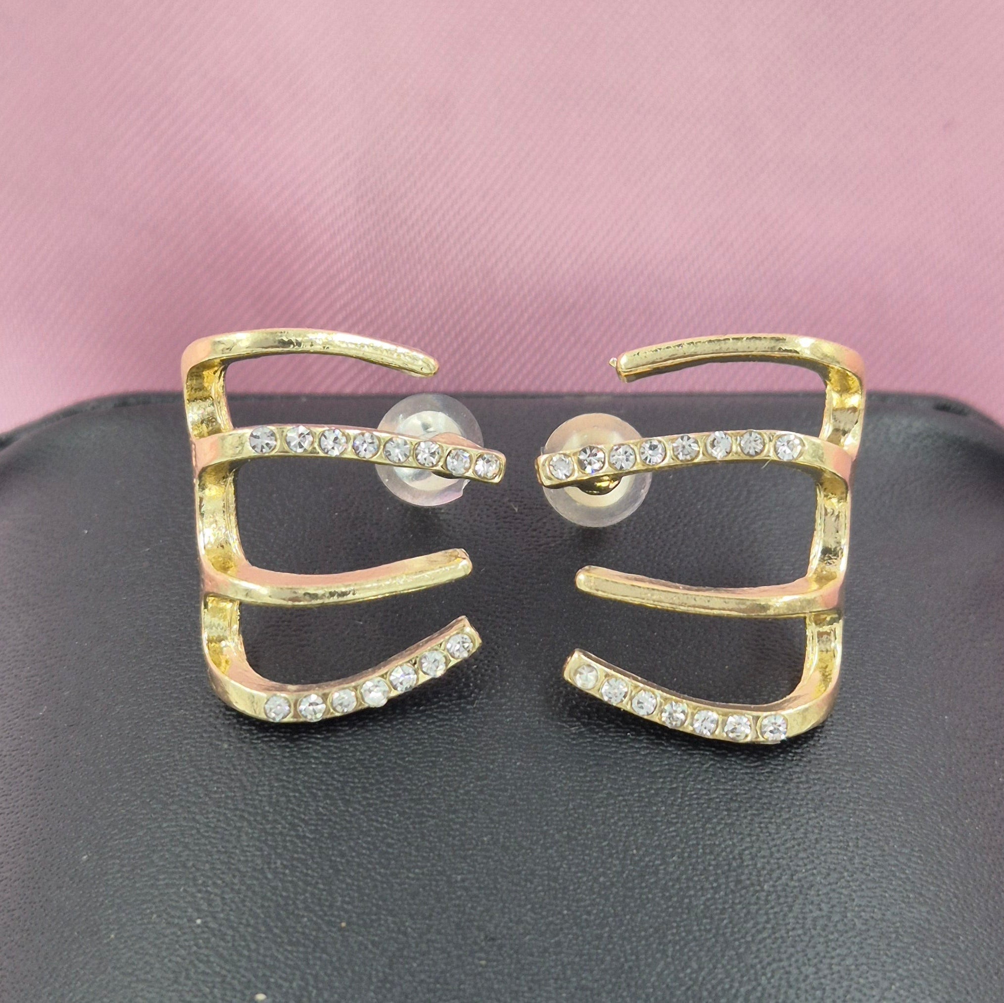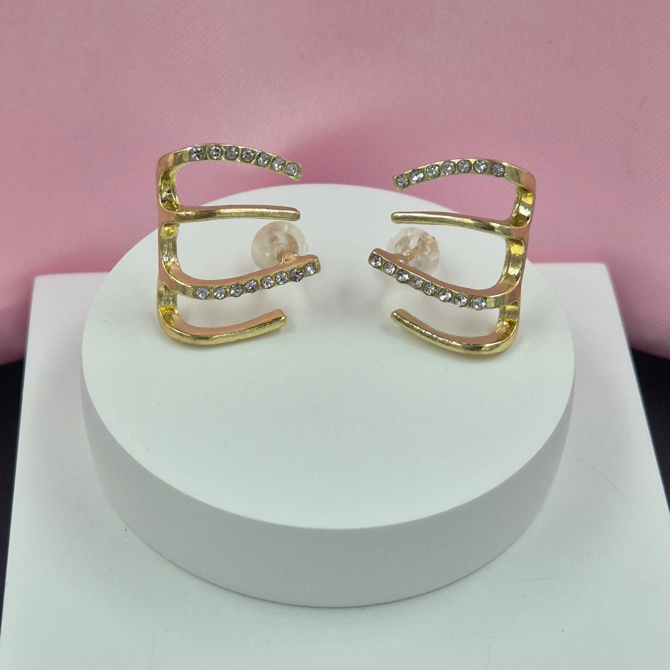 An elegant double E designed stud with white gem stones embedded.It clutches the lower end of your ear lobe beautifully.