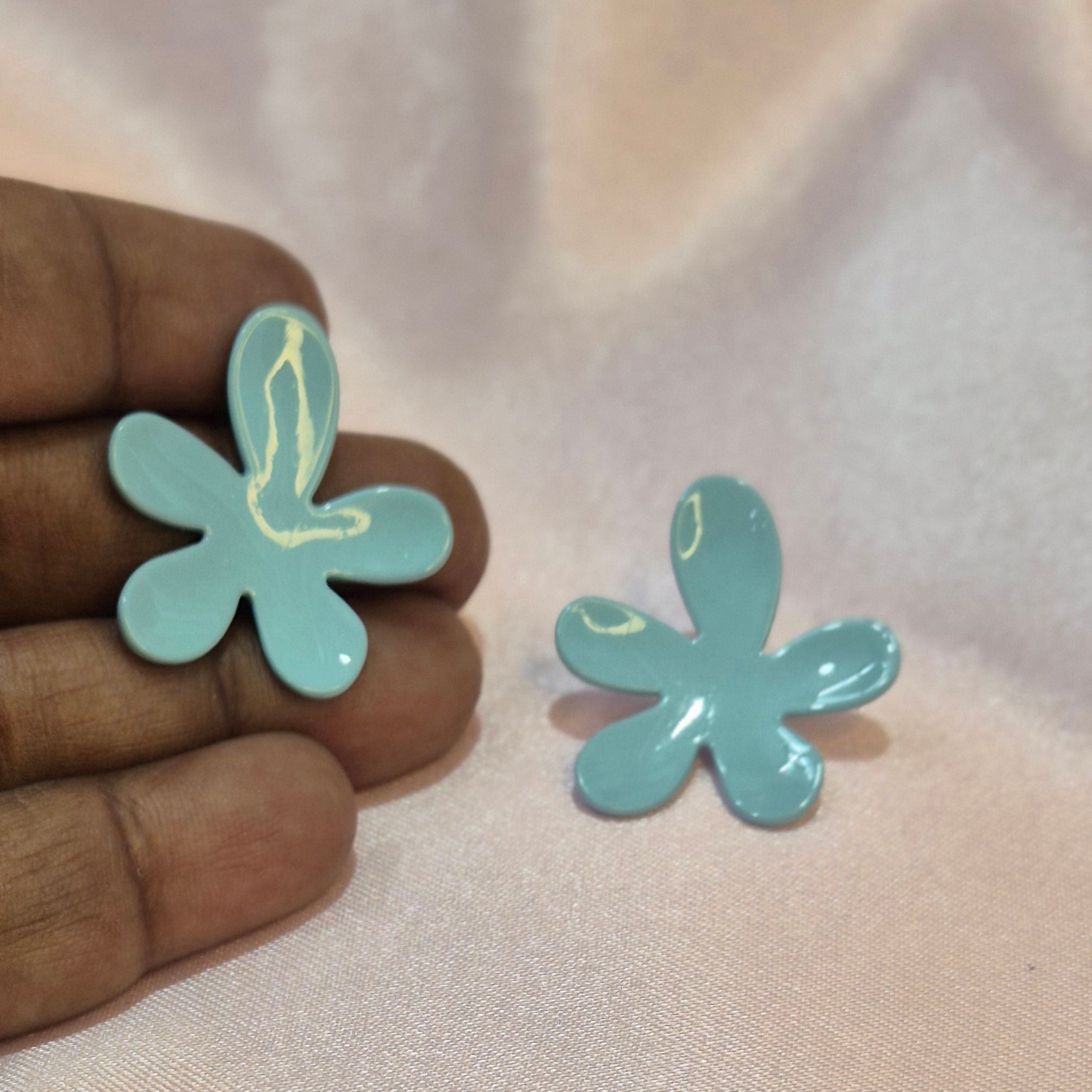 Give your look a playful and stylish touch with these Glossy Pastel Flower Stud Earrings. Designed in a fun, abstract floral shape in white and bluecolour, with a smooth glossy finish, these earrings add an instant pop of charm to any outfit.