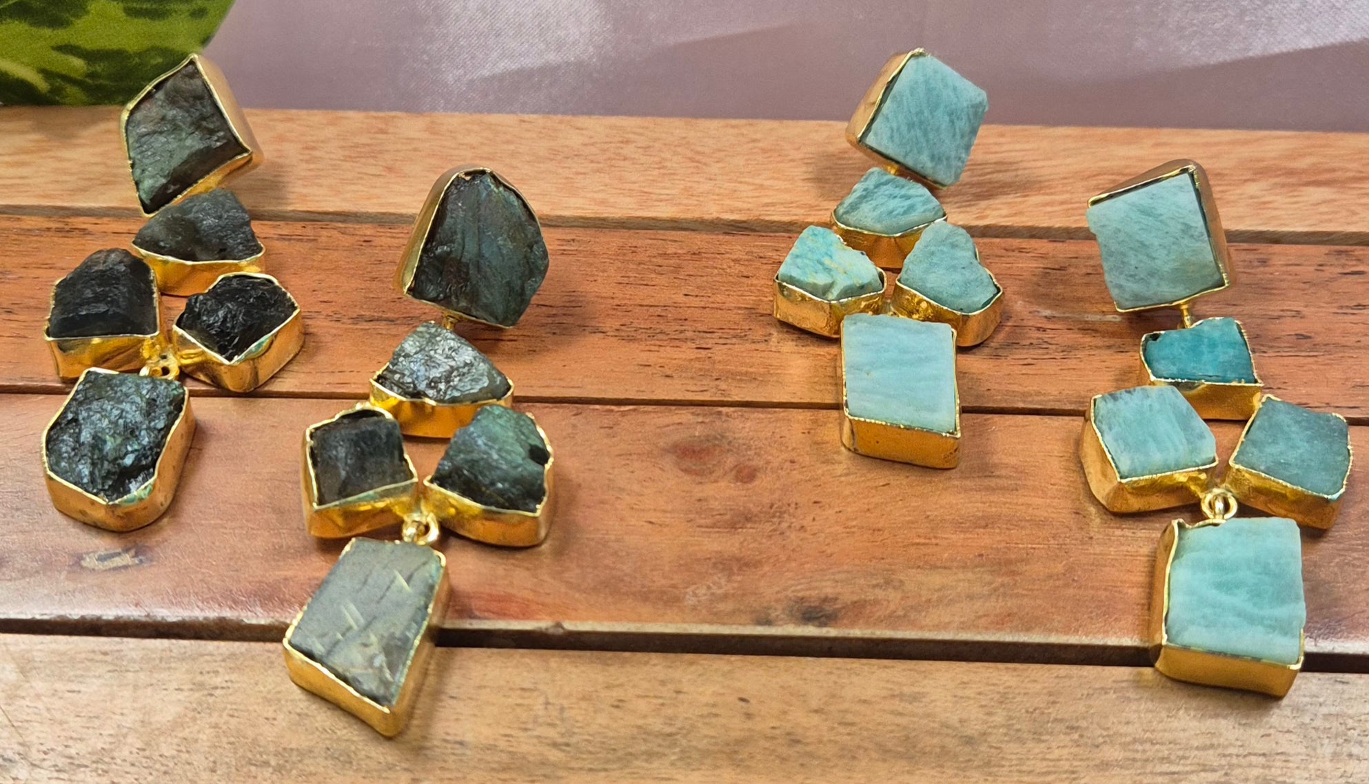 Treat yourself in these trendy natural stone cuts dangler which comes in 2 variants-Turquoise blue and Brown.