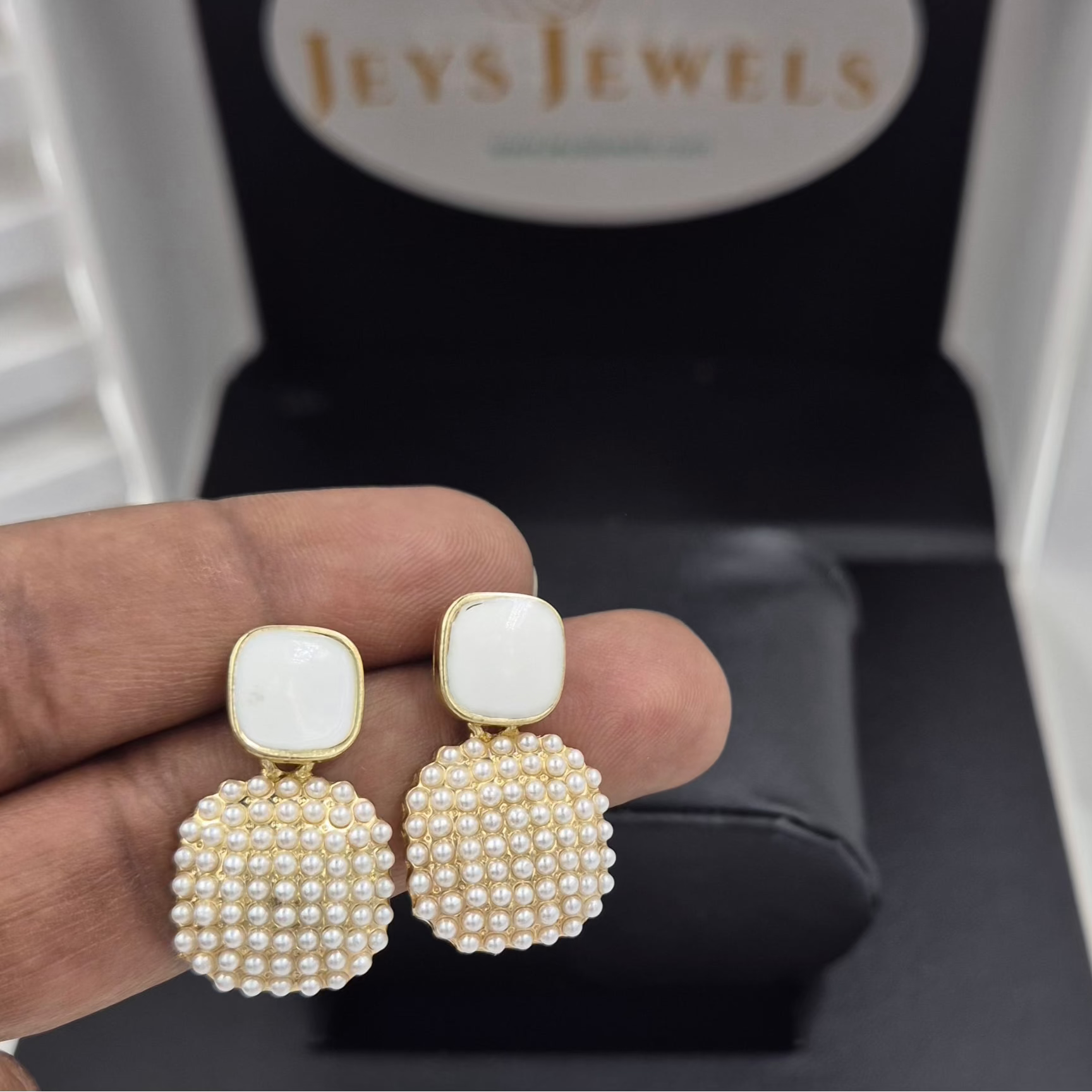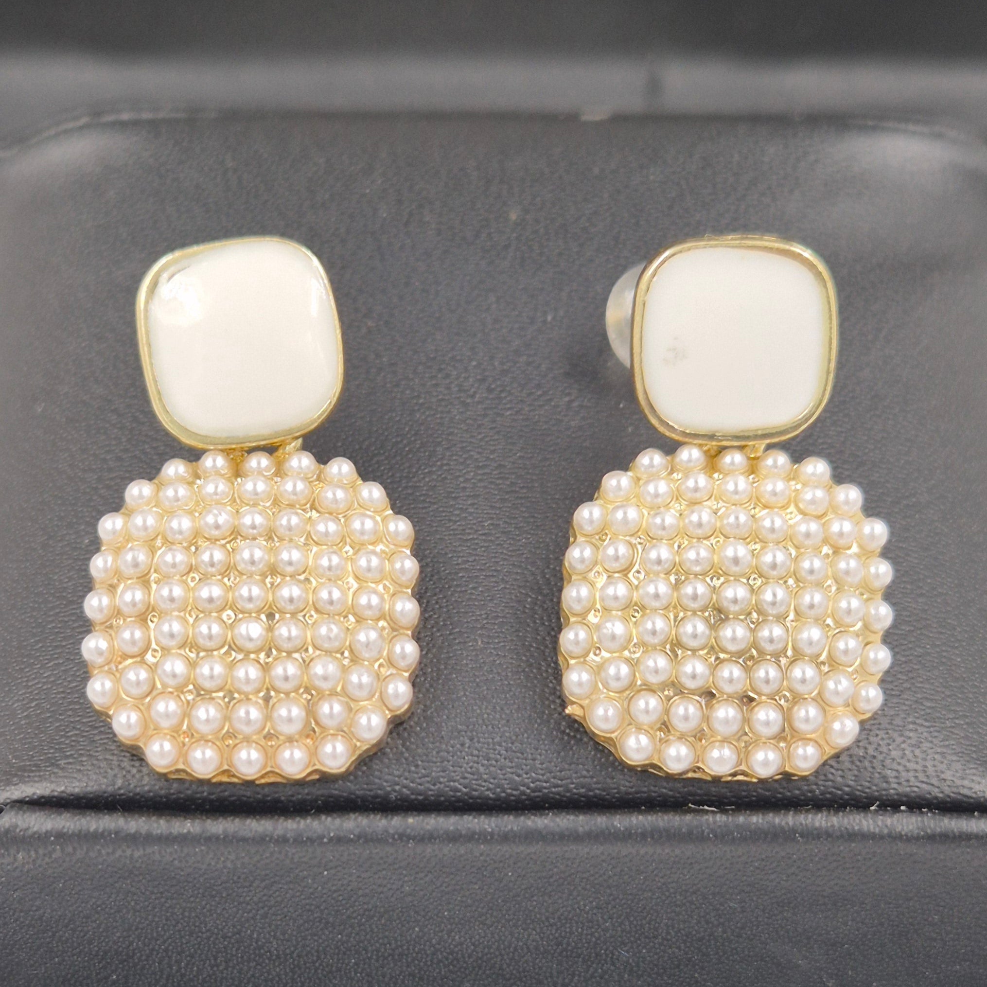 A very cute pearl cluster embedded in a square drops.Elevates your look in both daily wear and festive wear.