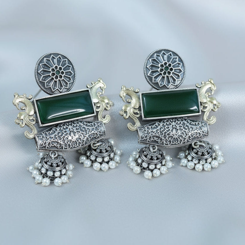 Twinkling Twin Oxidised Dual Tone Jhumkas